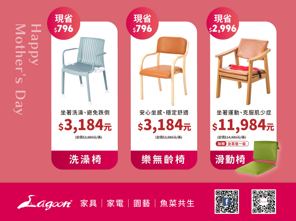Lagoon 推出母親節限定活動「送媽媽 坐得住的幸福」,精選多款功能型椅款推出限時8折優惠,從日常生活到居家安全全面升級,讓關心不只是心意,更落實在每一天。