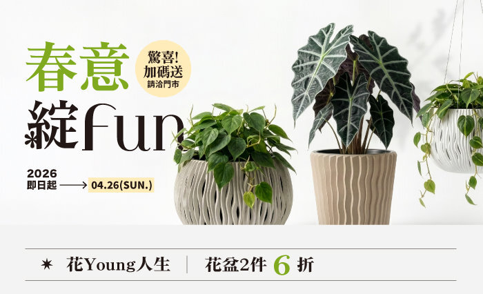 無論是想提升居家質感,還是開始你的園藝生活,這個春天就是最好的起點。把春天帶進家中,讓生活每一天都充滿清新與療癒。