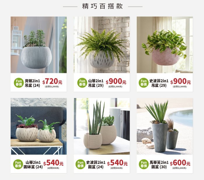 本次活動主打人氣花器系列,精選設計感花盆推出「2件6折」優惠,無論是桌面小型植栽,還是客廳落地大型花盆,都能輕鬆搭配出理想風格。從簡約線條到自然紋理,讓綠植不只是植物,更是空間中的設計亮點。