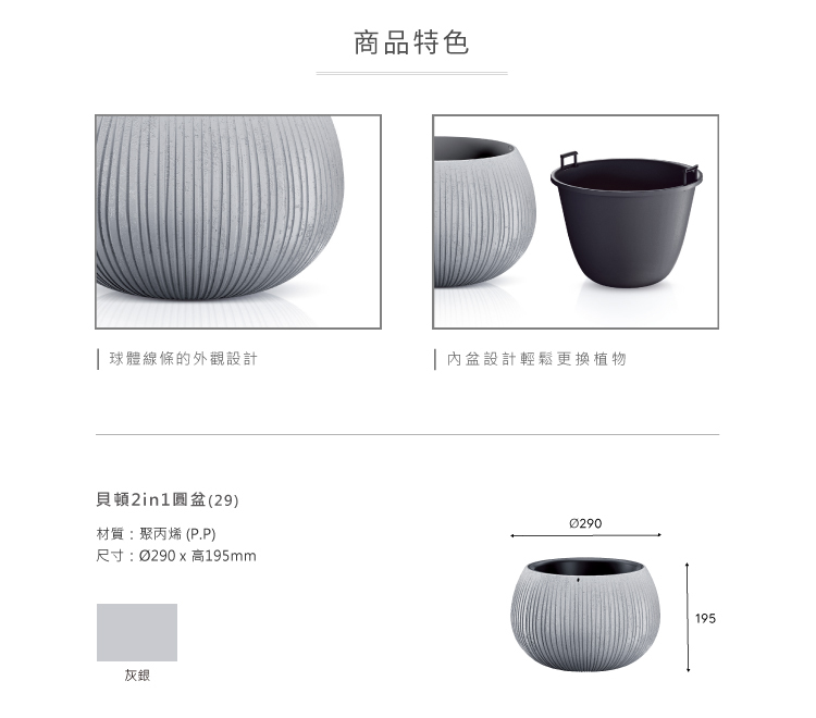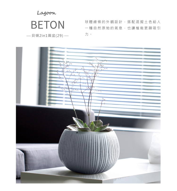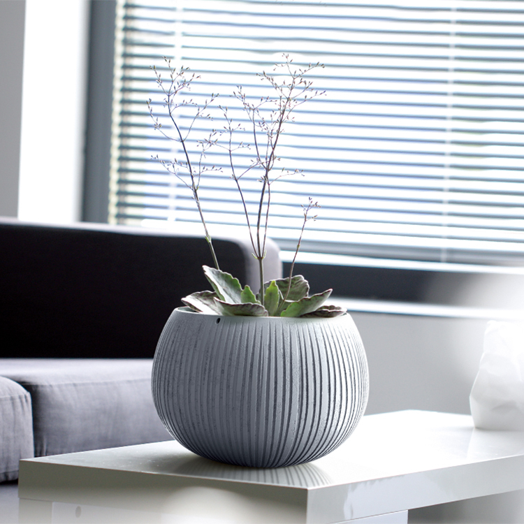 球體線條的外觀設計,搭配混擬土色給人一種自然原始的氣息.也讓植栽更顯吸引力.