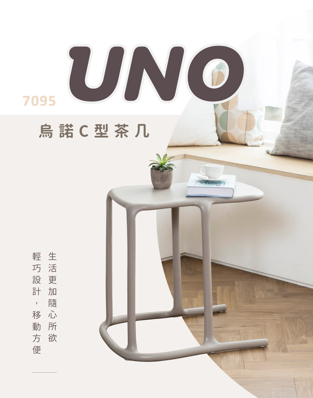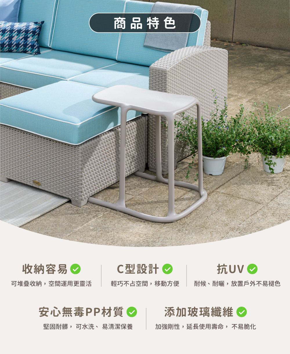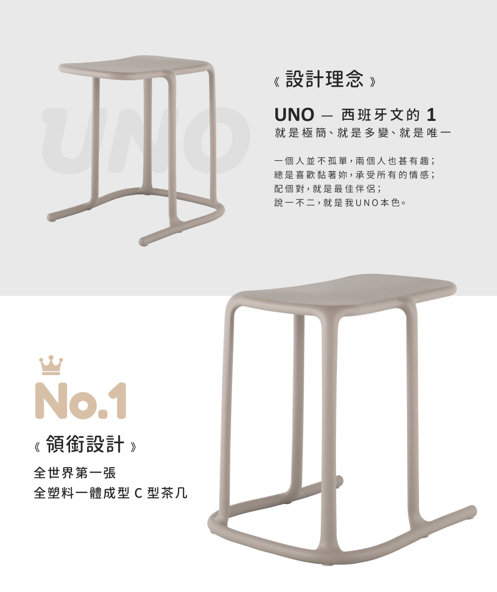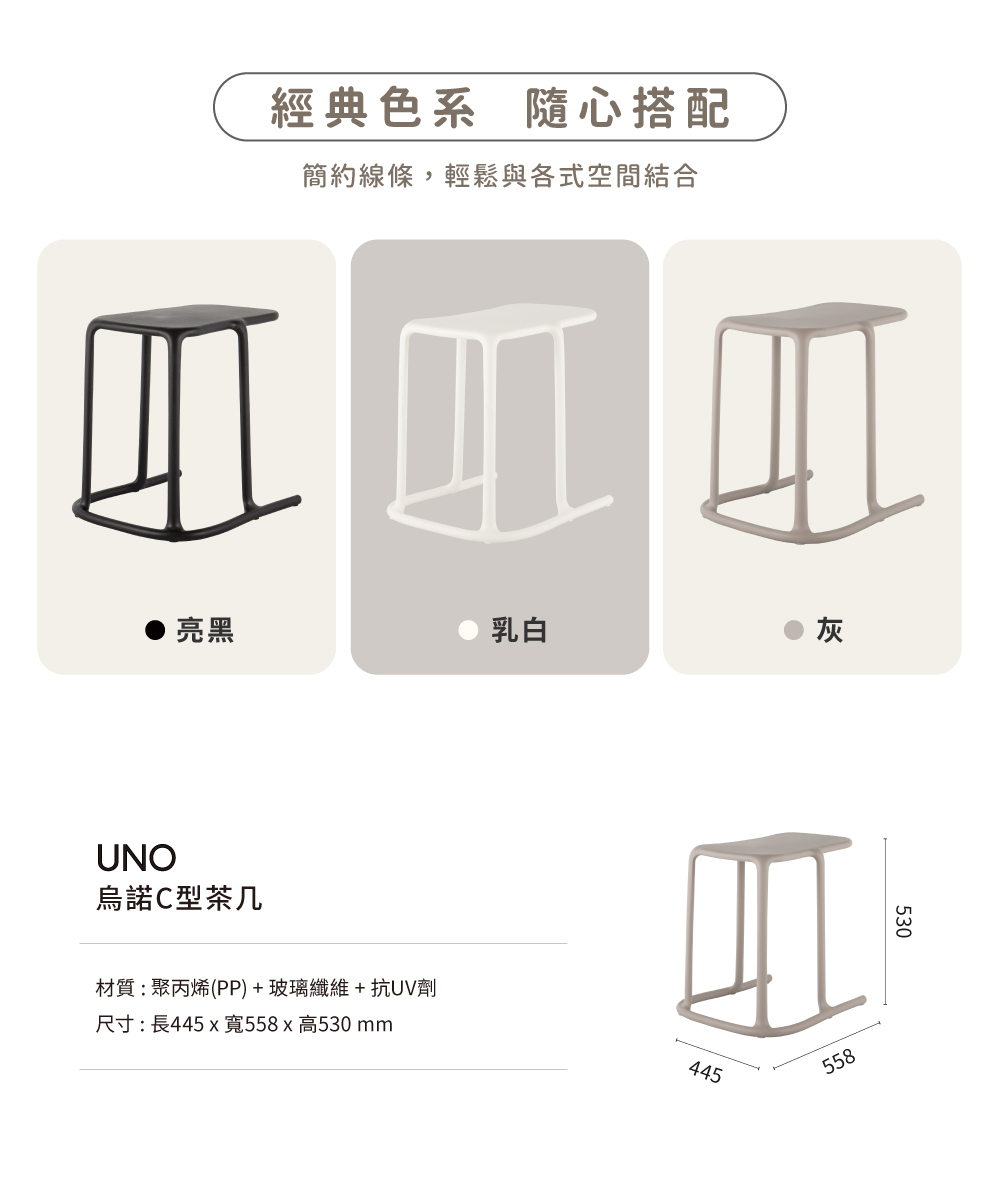 全世界第一張全塑料一體成型C型茶几,精巧的Size加上C型設計,簡約好看,展現出小空間坪效利用的魔法。
