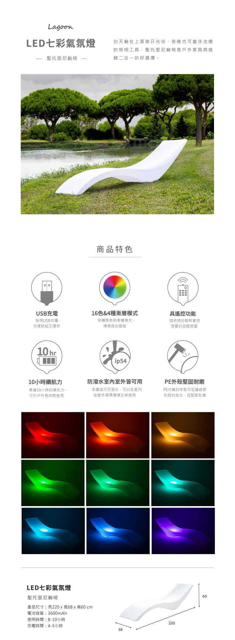 Lagoon LED七彩氣氛燈─聖托里尼躺椅