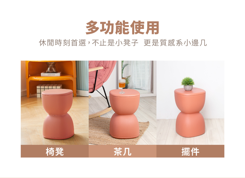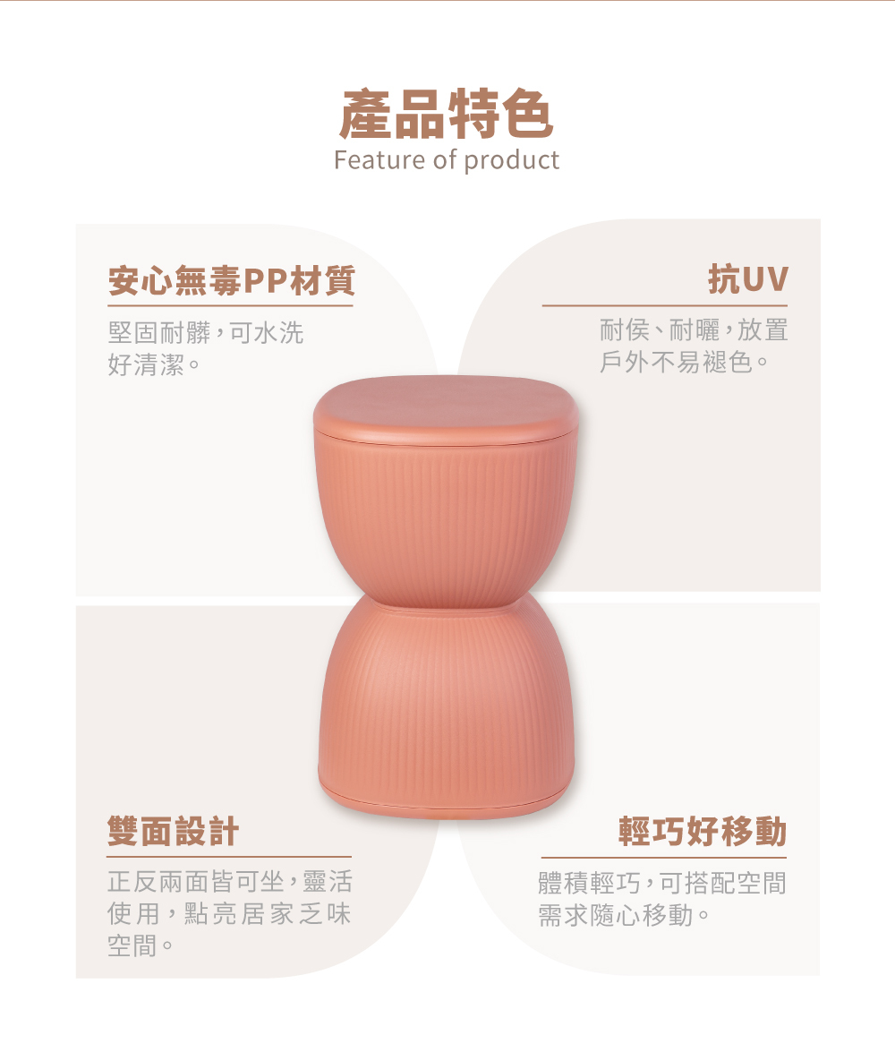 俏皮可愛沙漏造型個性又時尚, 百搭實用。 充滿童趣的設計,大人小孩都適合使用。多功能使用,除了椅凳功能,也可當小茶几或空間裝飾用。