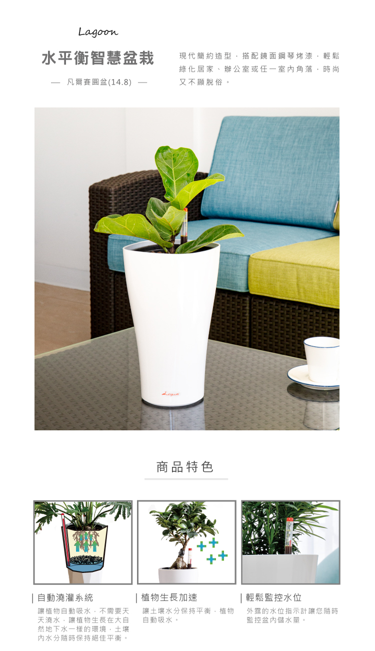 如天然地下水灌溉的全新栽培系統,現代簡約造型,搭配鏡面鋼琴烤漆,輕鬆綠化居家、辦公室或任一室內角落。