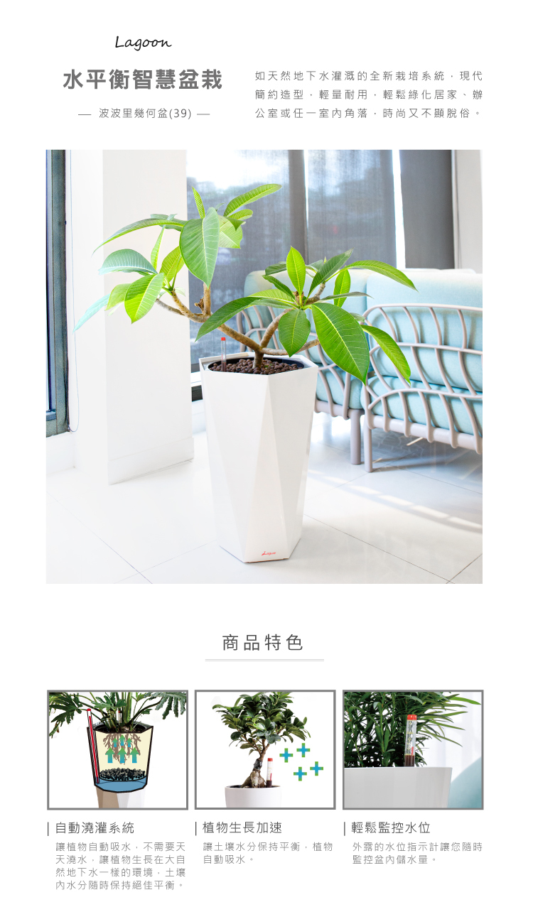 如天然地下水灌溉的全新栽培系統,現代簡約造型,輕鬆綠化居家、辦公室或任一室內角落。
