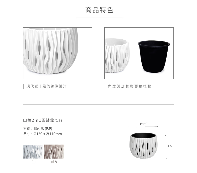球體線條的外觀設計,搭配混擬土色給人一種自然原始的氣息.也讓植栽更顯吸引力
