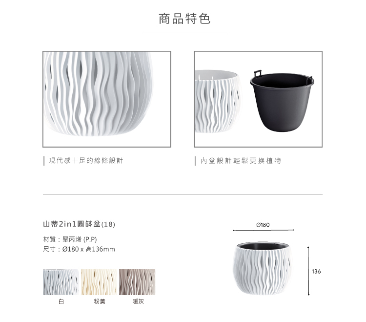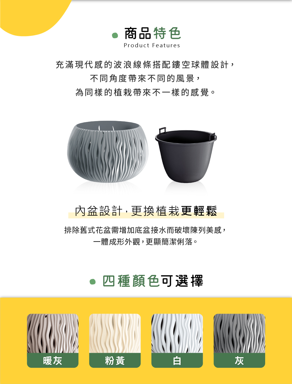 球體線條的外觀設計,搭配混擬土色給人一種自然原始的氣息.也讓植栽更顯吸引力