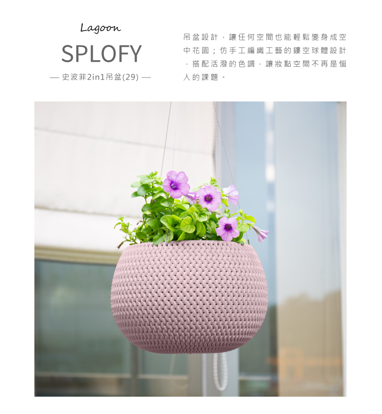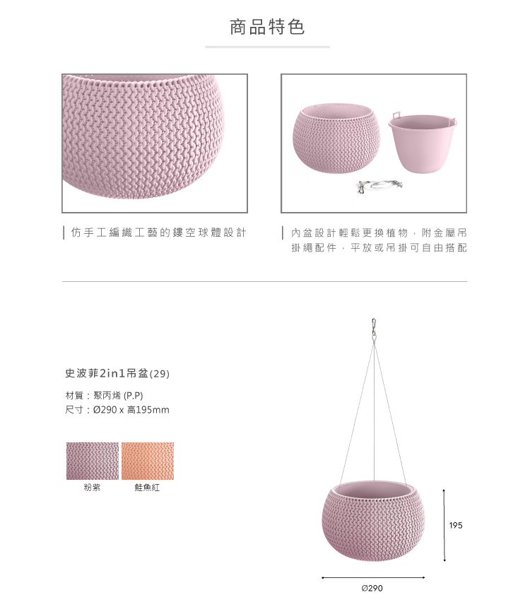 吊盆設計,讓任何空間也能輕鬆變身成空中花園;仿手工編織工藝的鏤空球體設計,搭配活潑的暖色調,讓妝點空間不再是惱人的課題.