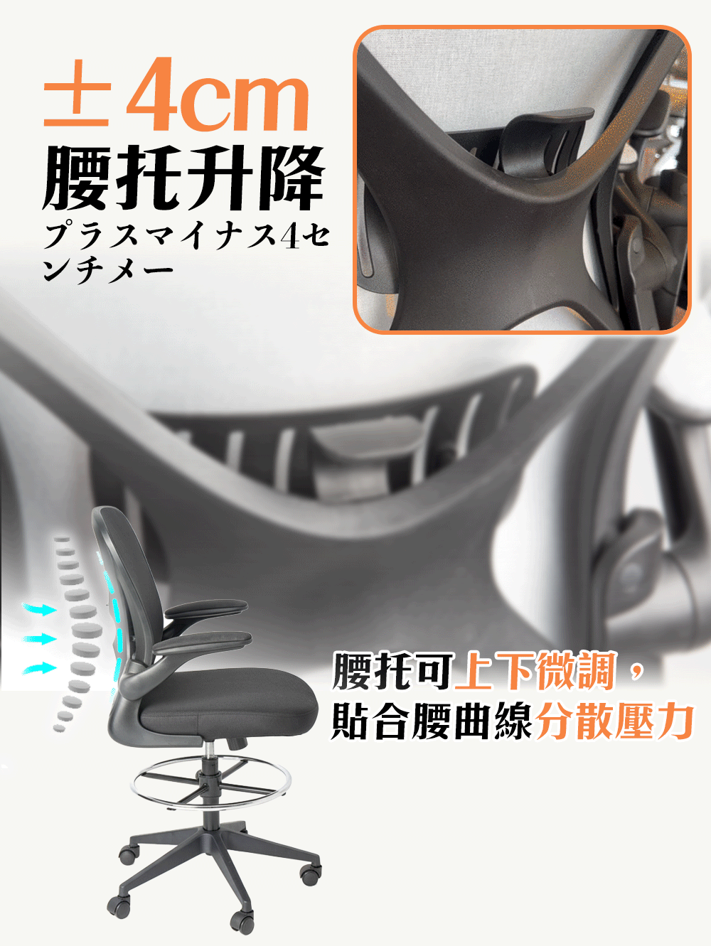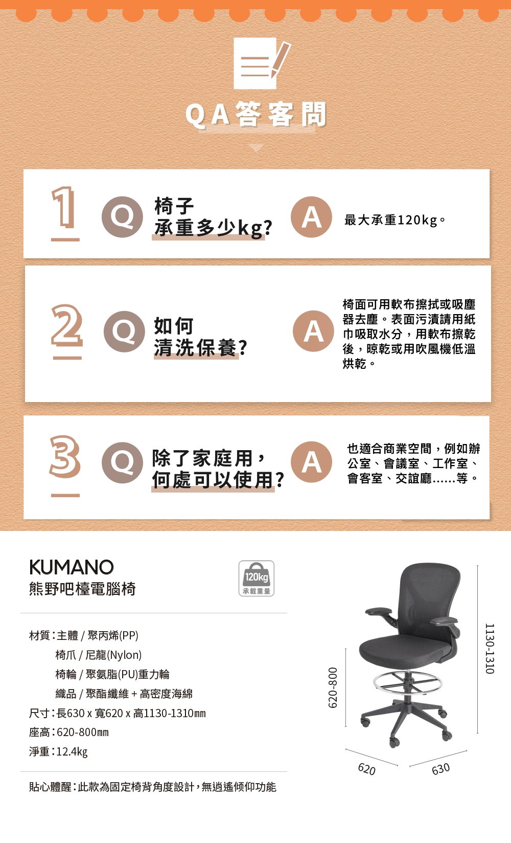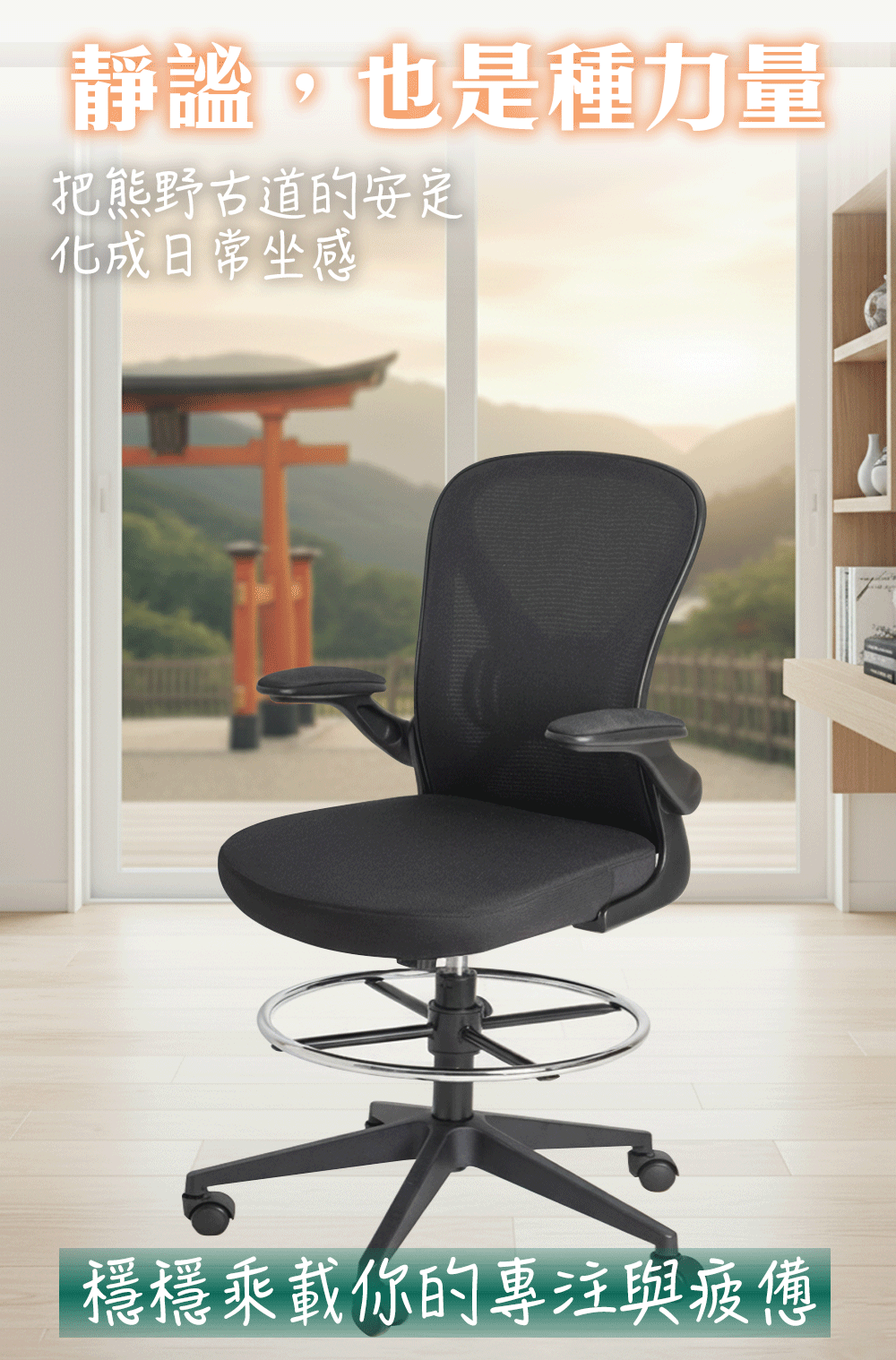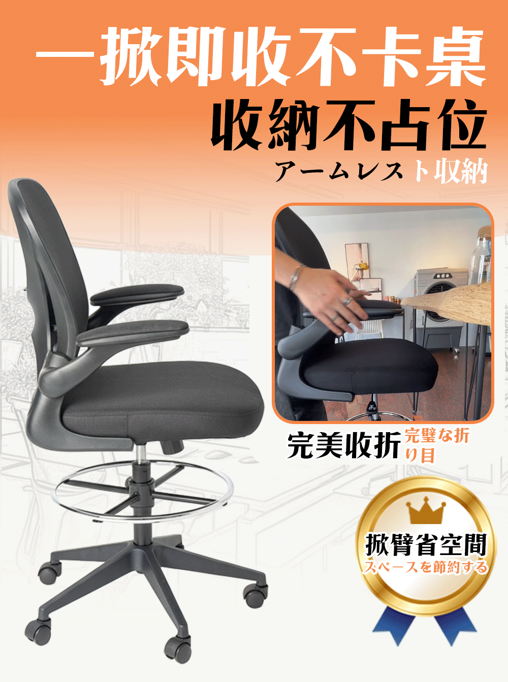 最舒服的設計,支撐你久坐的需求,高腳椅也能成為日常的舒適選擇。適用於 95-106cm 中島/吧檯桌面。安全重力輪設計,坐下時即自動鎖定,上下椅更穩定與安全性。