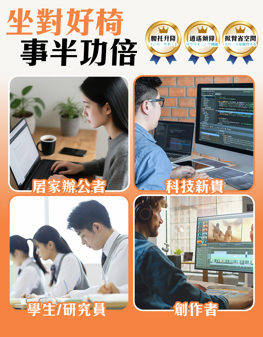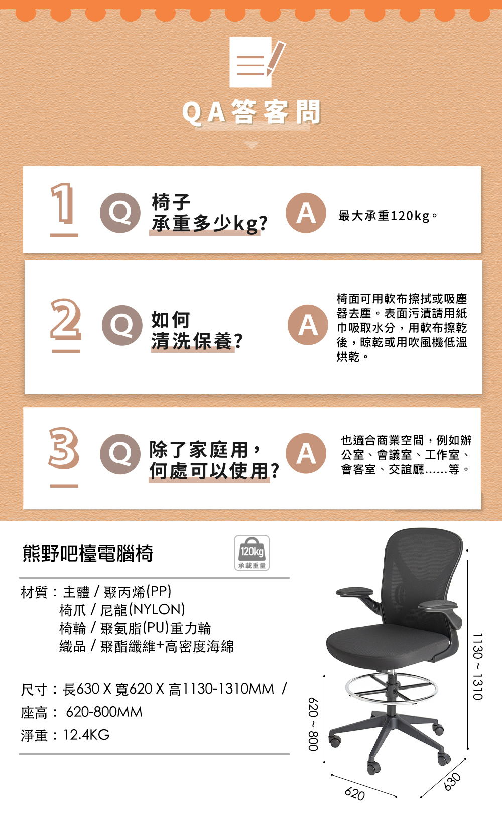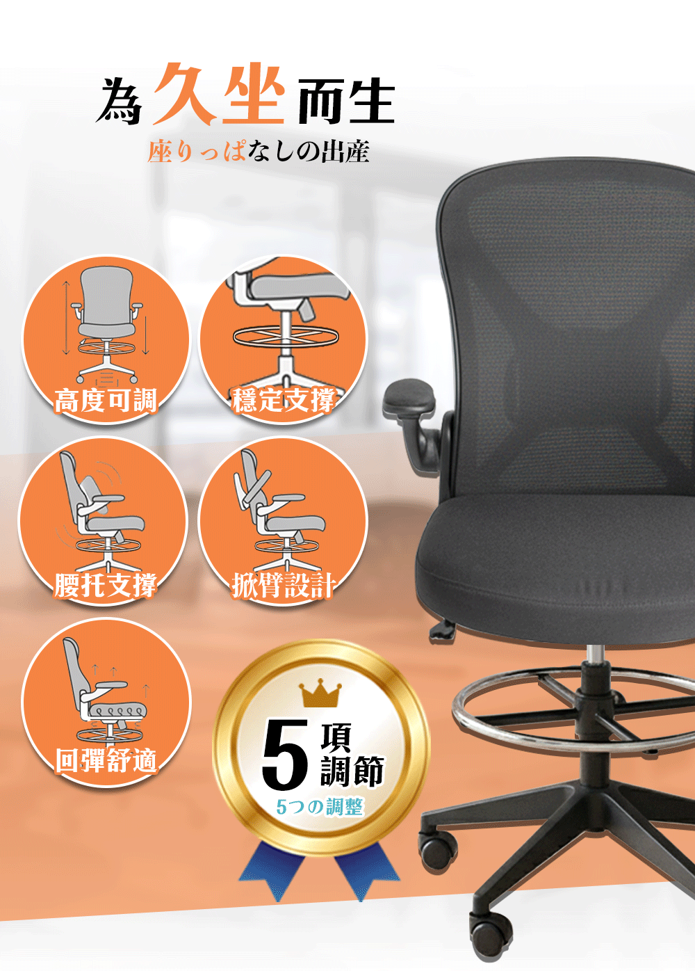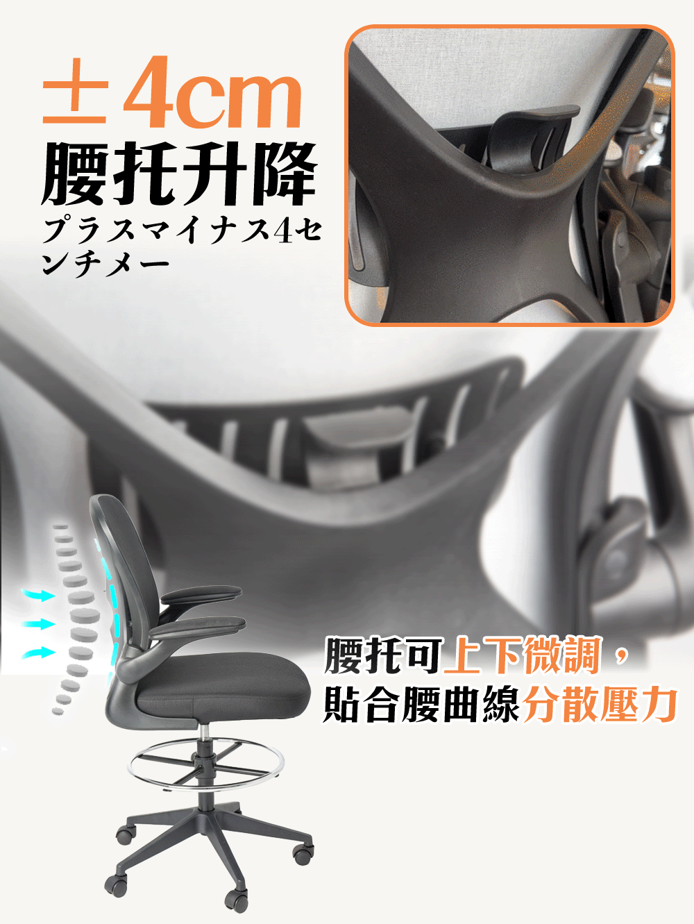 最舒服的設計,支撐你久坐的需求,高腳椅也能成為日常的舒適選擇。適用於 95-106cm 中島/吧檯桌面。安全重力輪設計,坐下時即自動鎖定,上下椅更穩定與安全性。