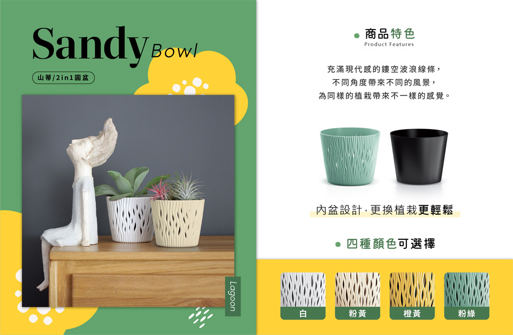 用美麗的花盆來承載您悉心照料的植物,感受每一片綠葉在陽光下閃爍的光芒,將自然的美好引入家中。多款設計花盆優惠組合,多種尺寸搭配讓您一次入手,輕鬆美化居家空間,讓生活增添生命力