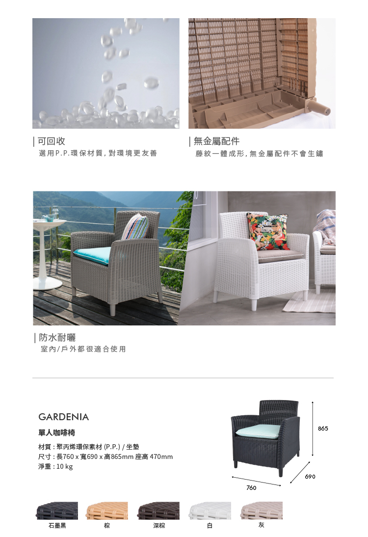 Gardenia 單人咖啡椅 (戶外坐墊)