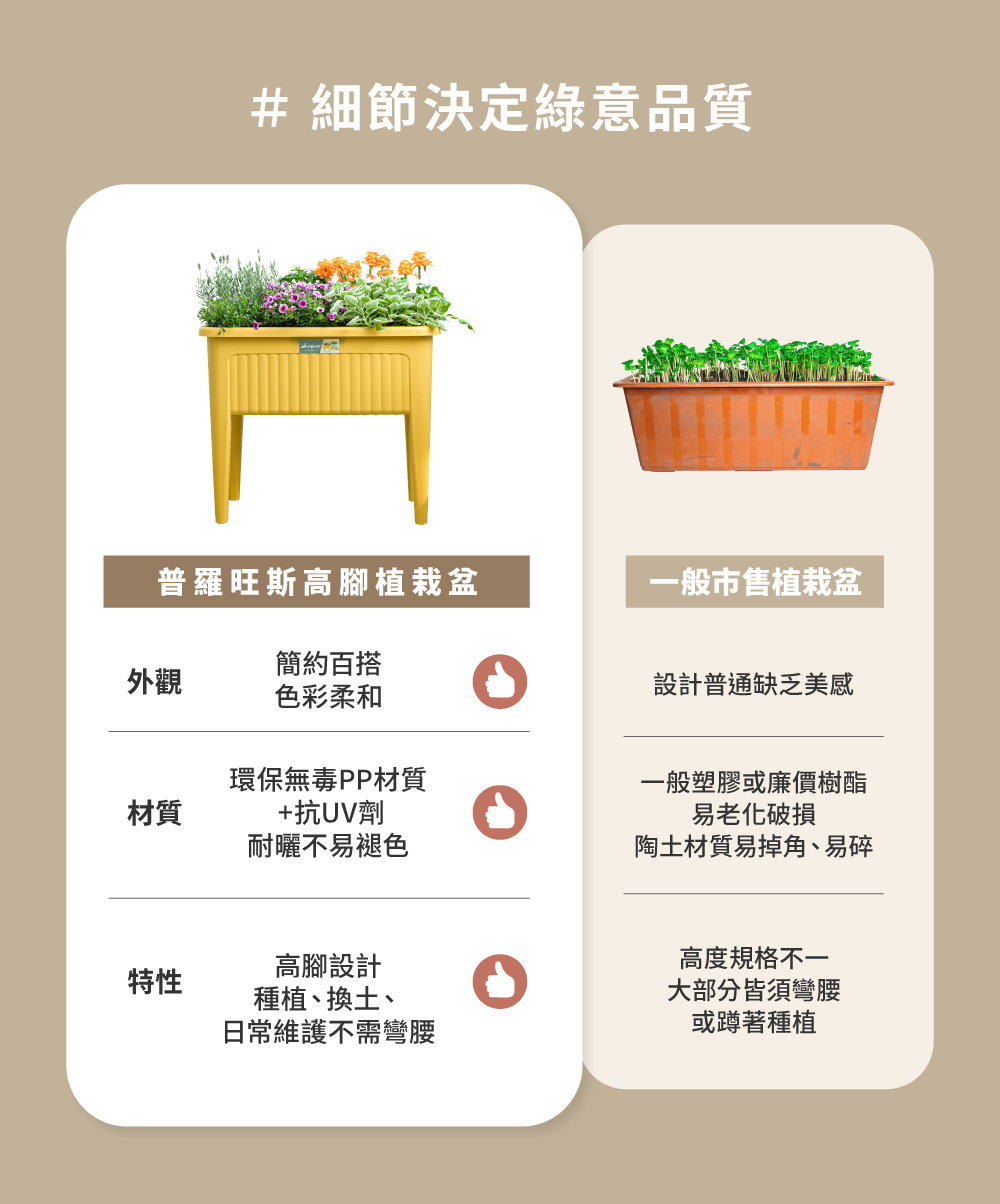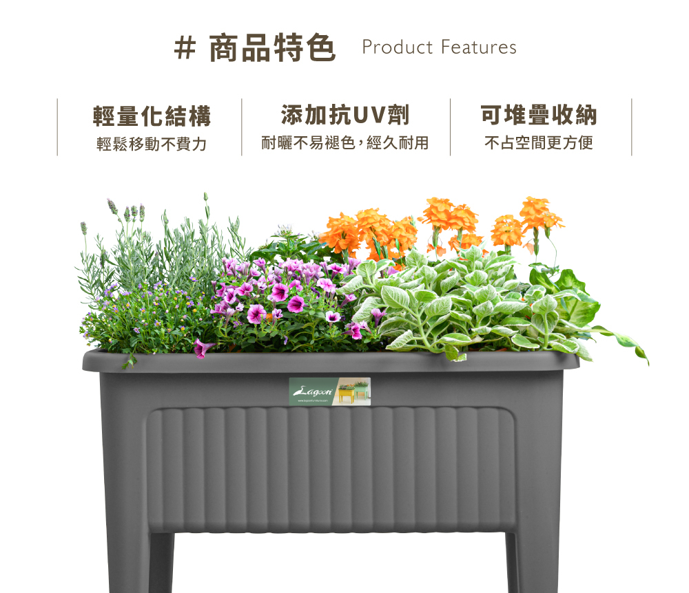 1.高腳設計,免彎腰即可種植,播種、澆水與日常整理更輕鬆,長時間園藝也不易疲勞
