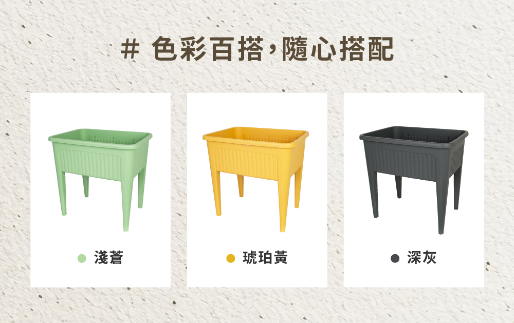 高腳免彎腰設計結合大容量種植空間與離地栽培結構,兼具排水系統與透氣設計,移動便利、降低病蟲害風險,適合陽台菜園、頂樓花園與居家園藝,輕鬆打造專屬開心農場與綠意生活。