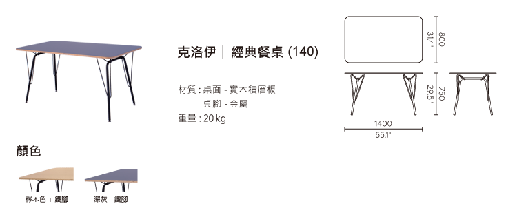材質: 桌面-實木積層板/桌腳-鐵製 (金屬)