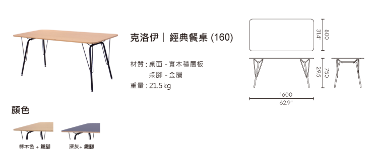 材質: 桌面-實木積層板/桌腳-鐵製 (金屬)