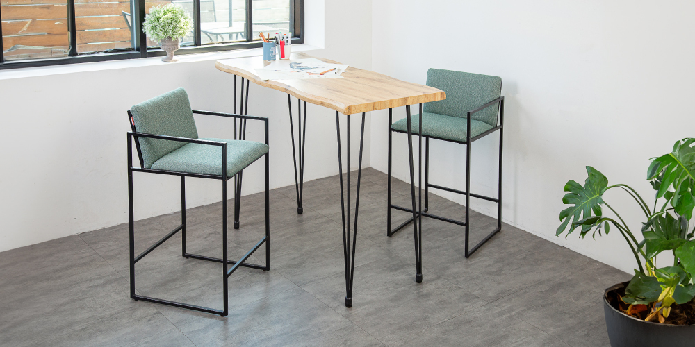 輕工業風的桌腳設計 ,搭配 4cm 超厚 桌板加上優雅曲邊設計,簡潔又不失變化。