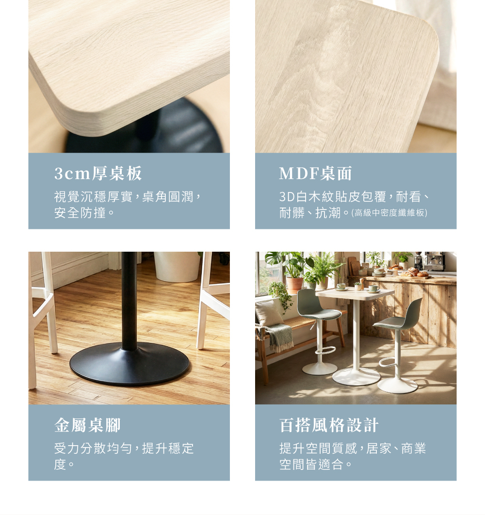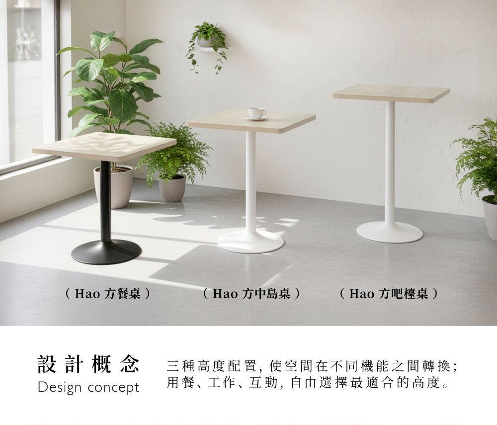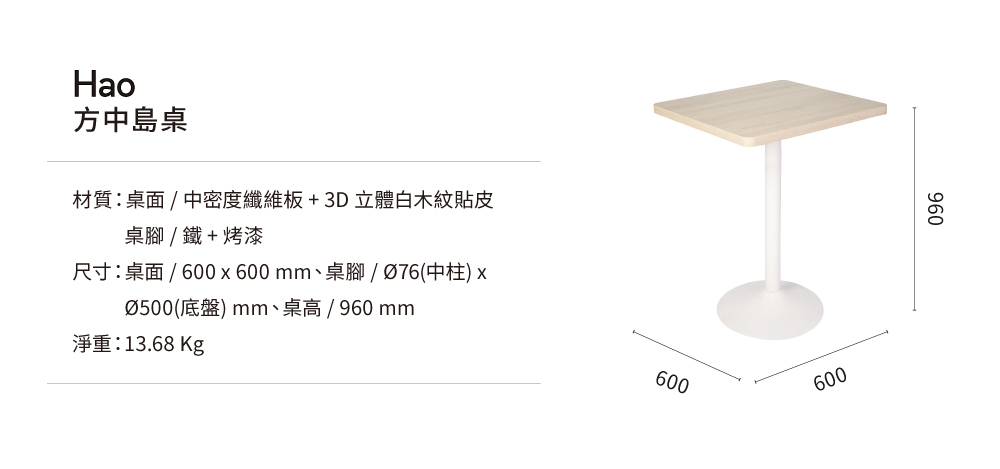 Hao方中島桌,陪伴家庭一起度過每個用餐的溫馨時光。輕工業風桌腳設計結合3cm厚實桌板,立體白木紋桌面觸感真實、視覺出眾,為空間增添質感與溫度。