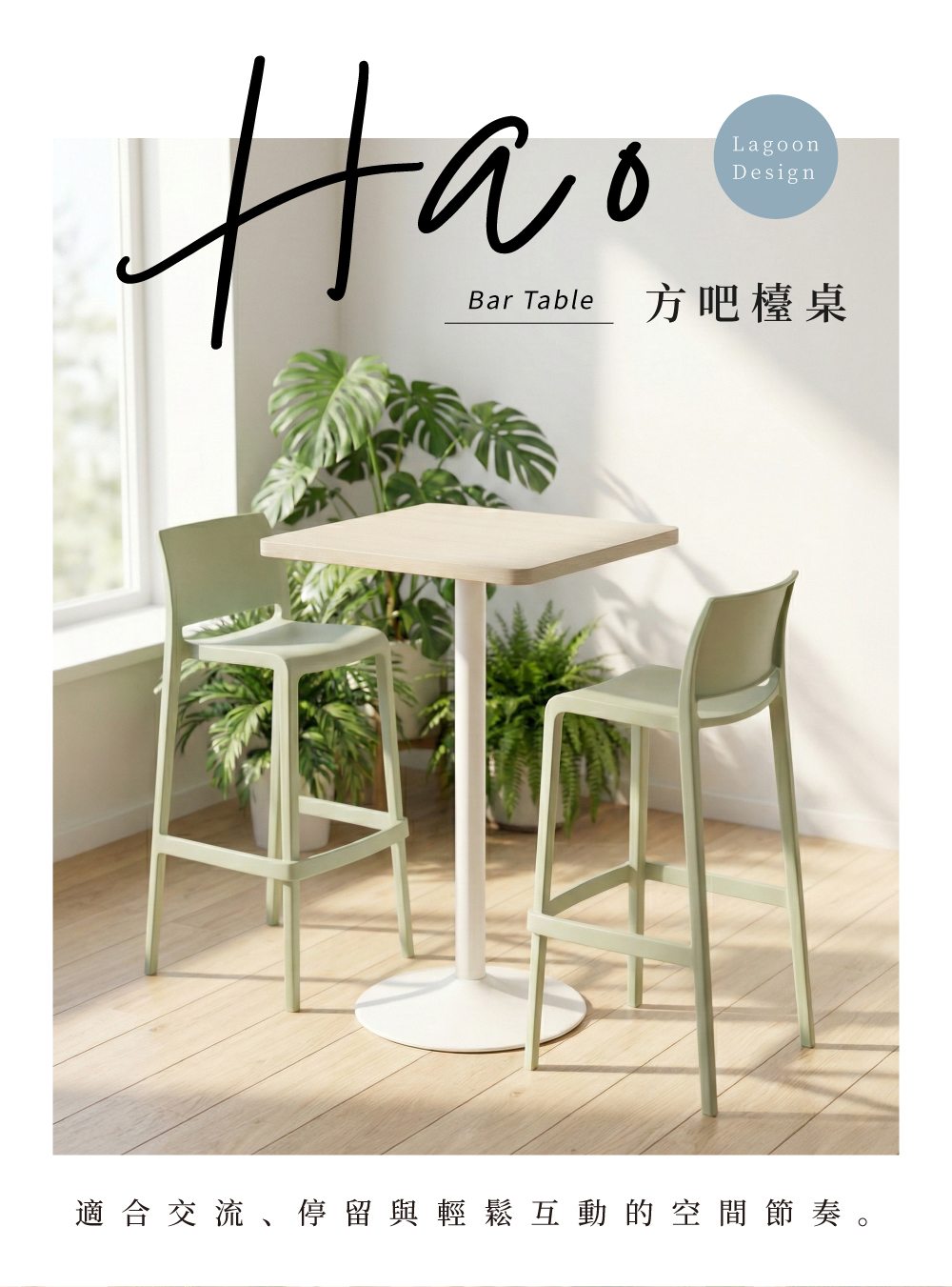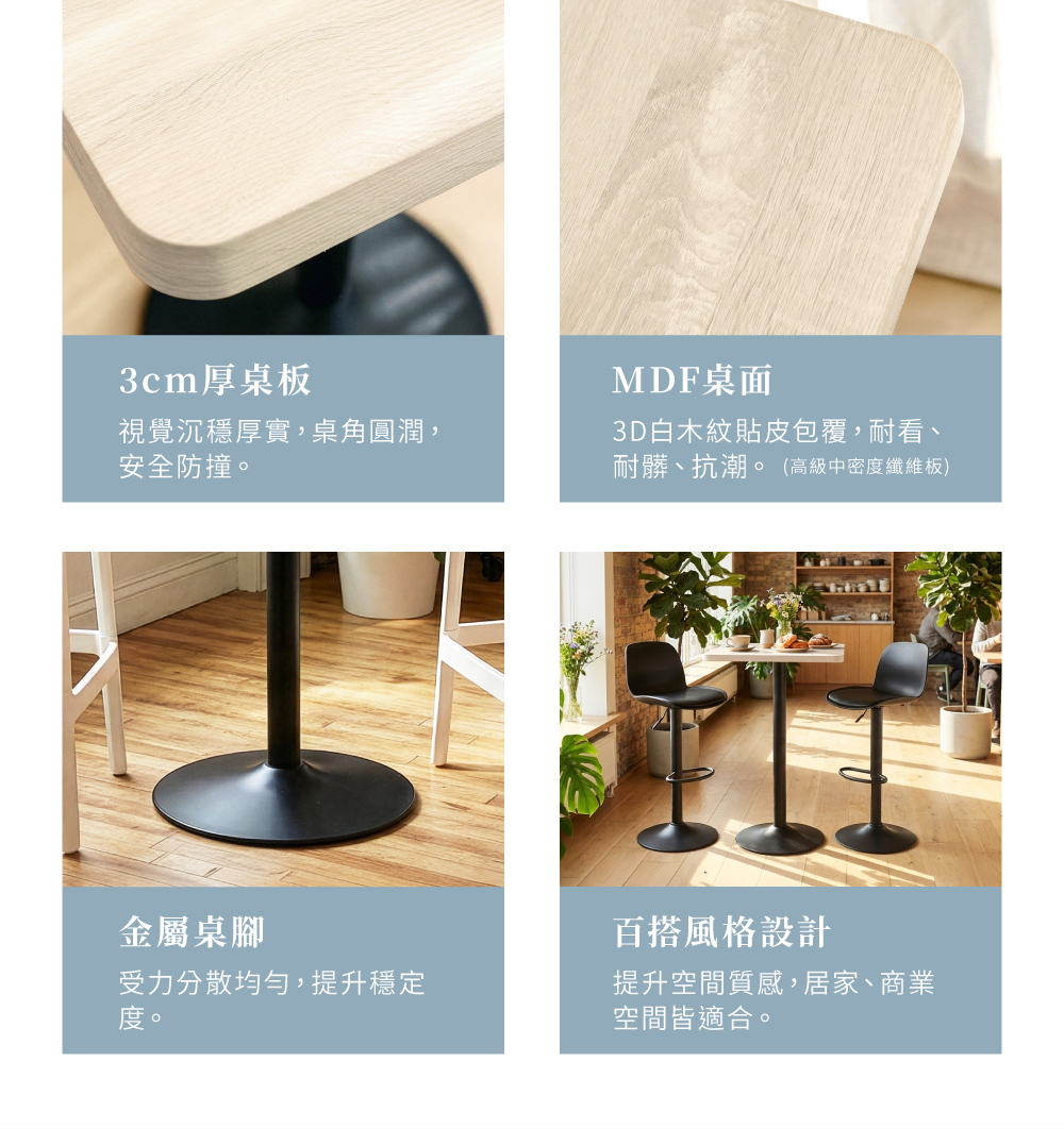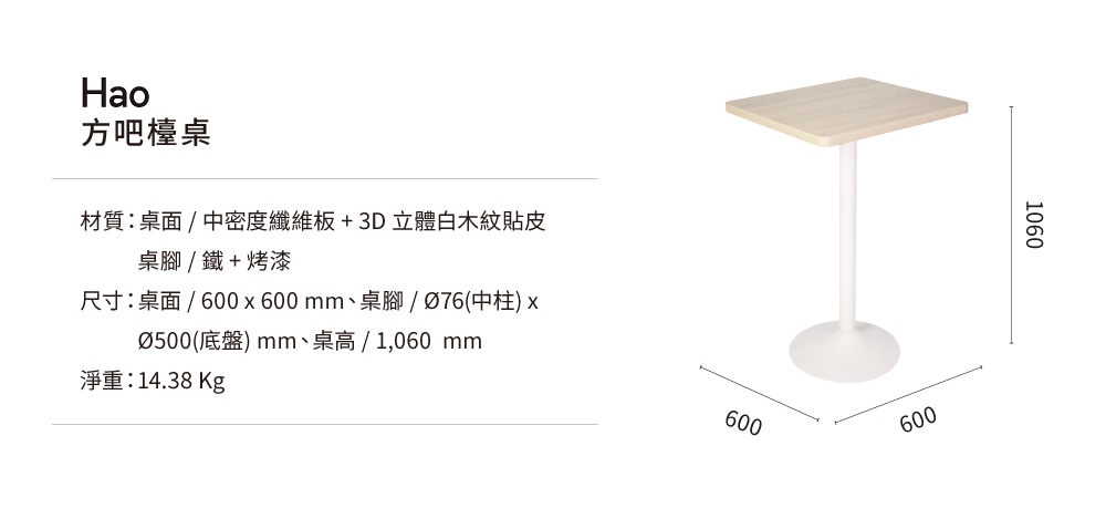 Hao方吧檯桌,陪伴家庭一起度過每個用餐的溫馨時光。輕工業風桌腳設計結合3cm厚實桌板,立體白木紋桌面觸感真實、視覺出眾,為空間增添質感與溫度。